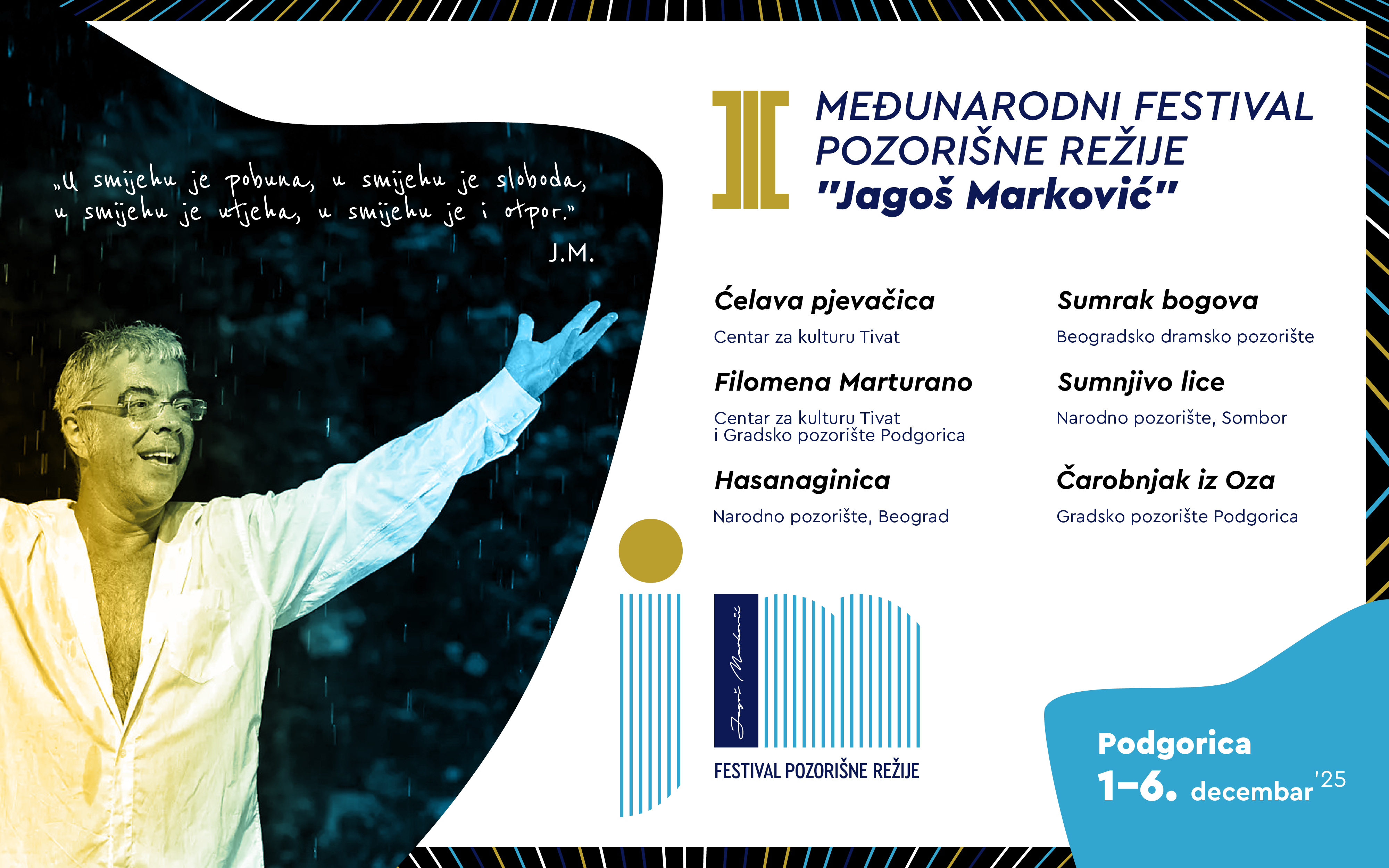 Prvo izdanje Međunarodnog festivala pozorišne režije „Jagoš Marković“, u organizaciji Gradskog pozorišta Podgorica, biće održano od 1. do 6. decembra 2025. godine i okupiće šest predstava iz Crne Gore i regiona koje je režirao jedan od najznačajnijih reditelja našeg prostora – Jagoš Marković.
