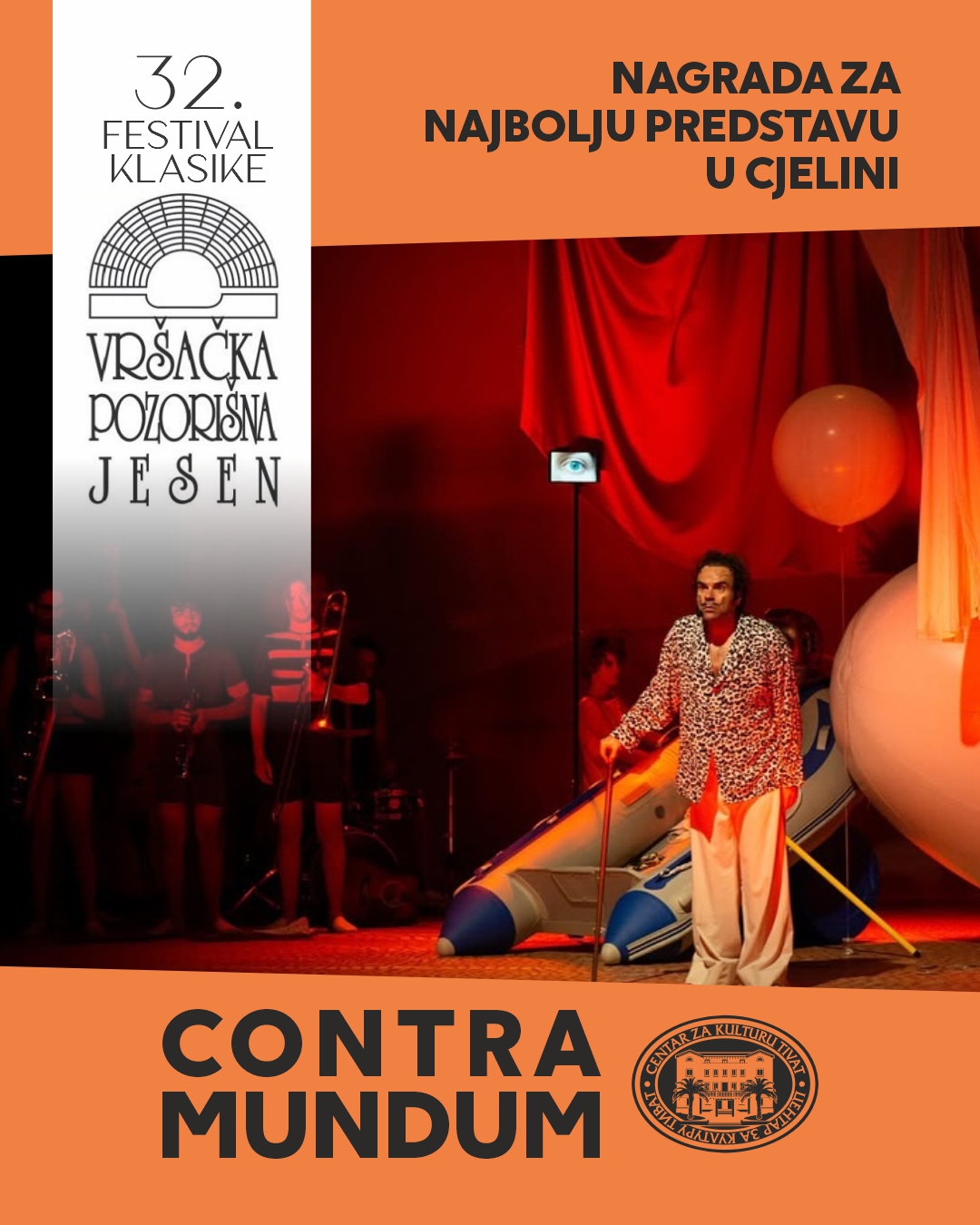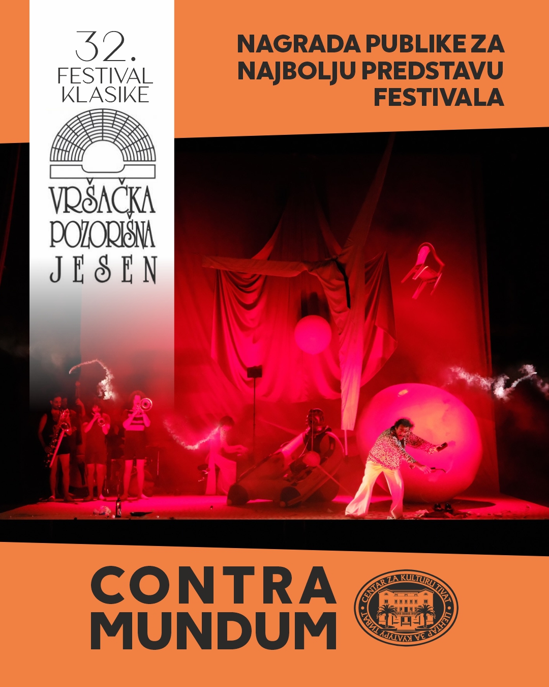 Predstava „Contra Mundum“ u produkciji Centra za kulturu Tivat apsolutni je pobjednik 32. Međunarodnog festivala klasike „Vršačka pozorišna jesen“, održanog od 28. oktobra do 3. novembra u Narodnom pozorištu „Sterija“ u Vršcu.