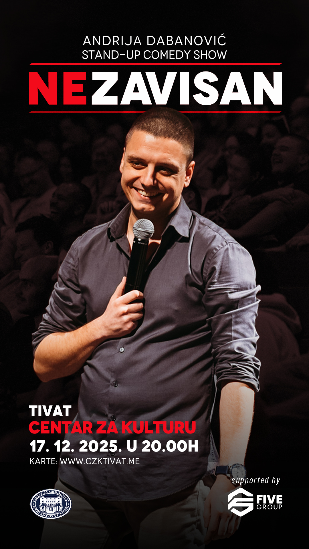 U Velikoj sali Centra za kulturu Tivat u srijedu 17. decembra u 20 h, nastupiće najpopularniji crnogorski stand-up komičar Andrija Dabanović sa hit komedijom “Nezavisan“.
