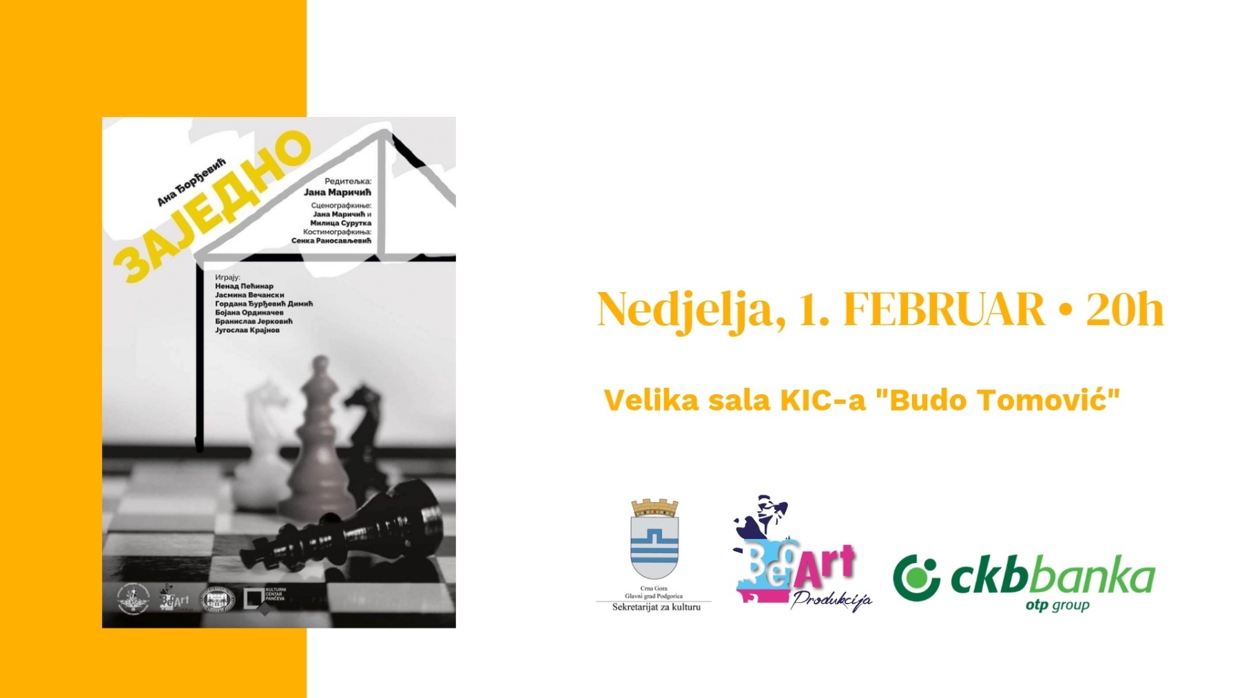 Predstava „Zajedno“, po tekstu Ane Ðorđević, u režiji Jane Maričić, biće odigrana u nedjelju, 1. februara.