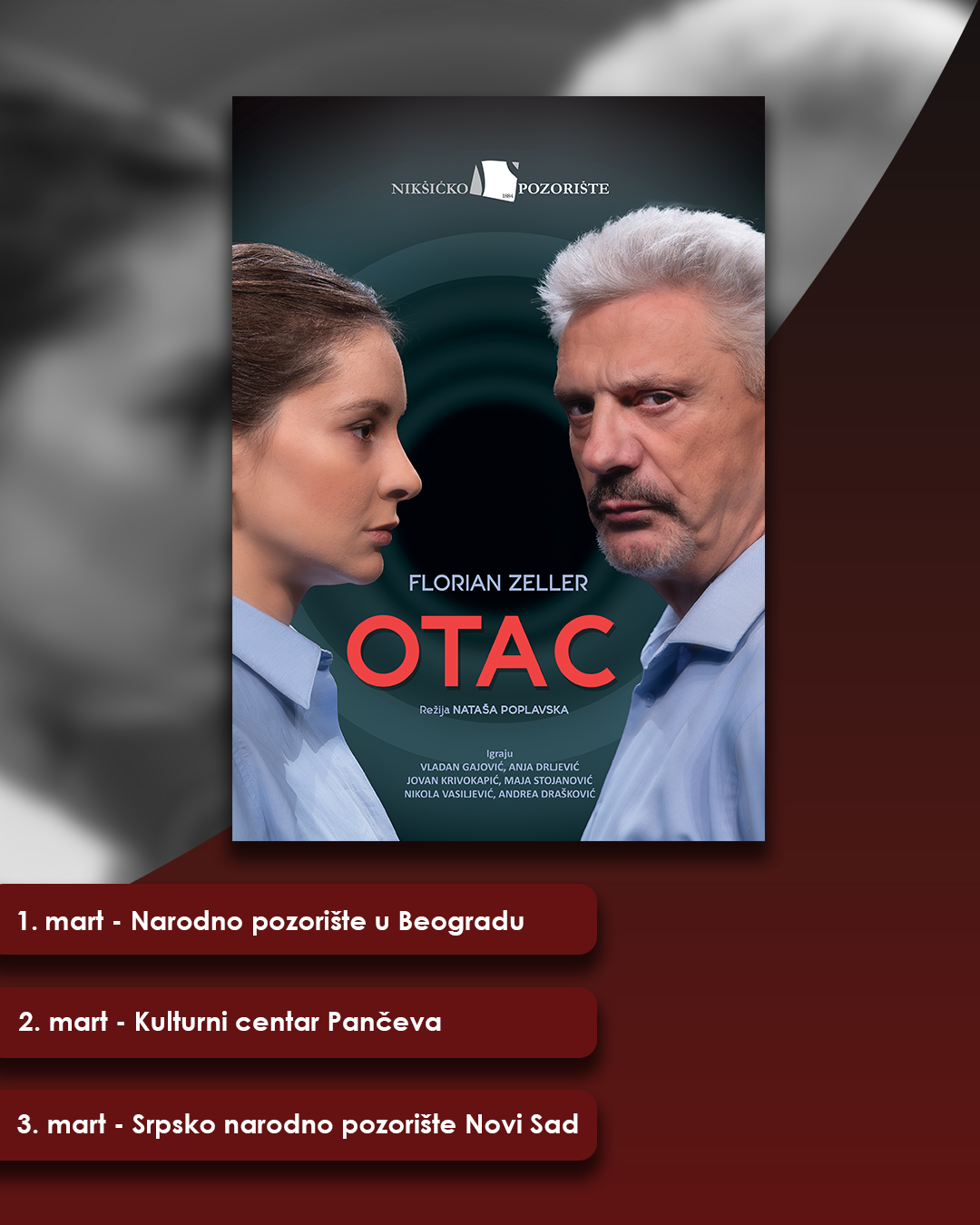 Predstava „Otac“, po tekstu Floriana Zellera, u režiji Nataše Poplavske, jedno je od najznačajnijih i umjetnički najzrelijih ostvarenja u aktuelnoj sezoni.