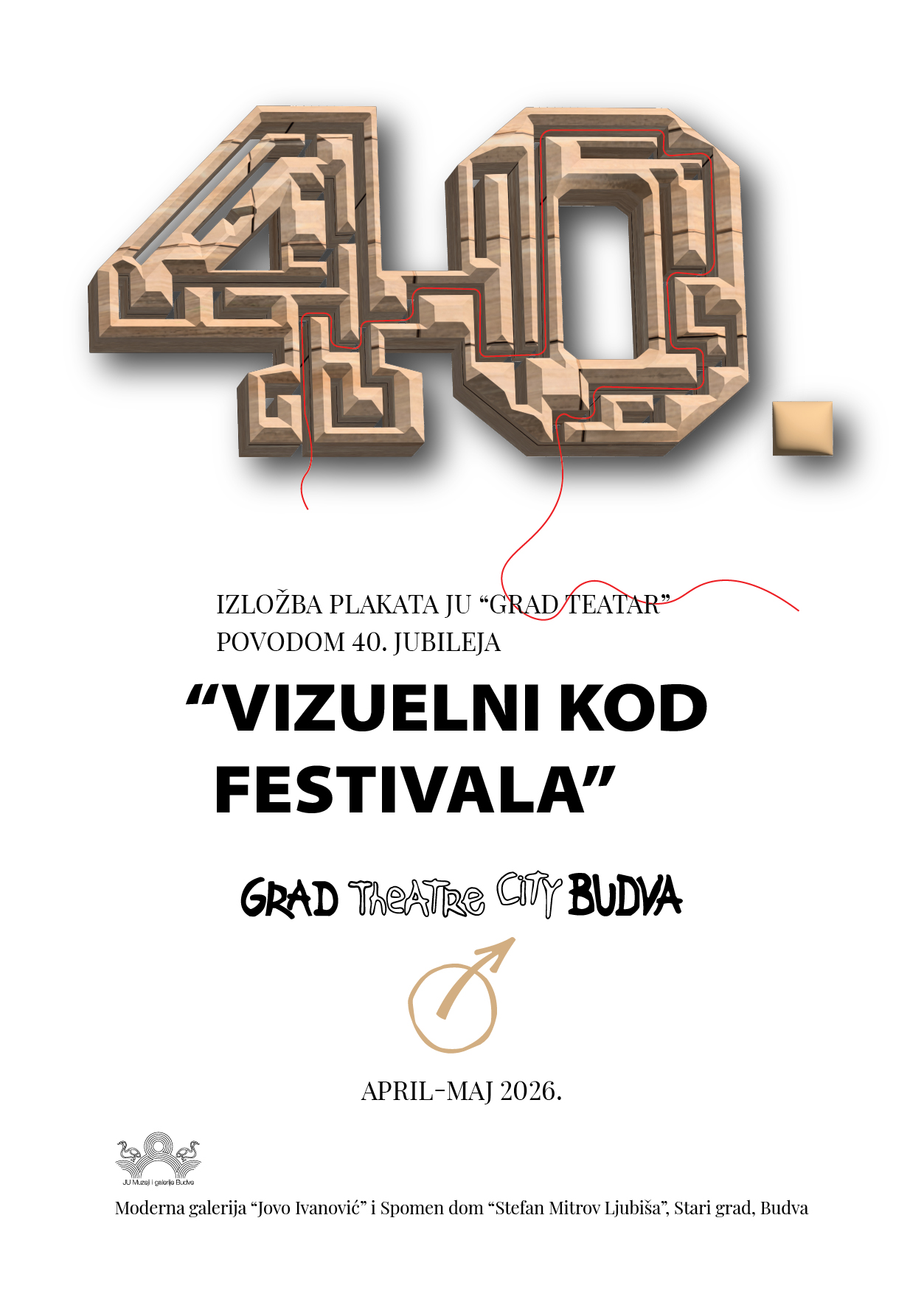 U ponedjeljak, 20. aprila u 19 h, u Modernoj galeriji „Jovo Ivanović” i Spomen-domu „Stefan Mitrov Ljubiša” u Starom gradu, biće otvorena izložba plakata JU „Grad teatra“, organizovana povodom 40. jubileja festivala, pod nazivom „Vizuelni kod festivala“.