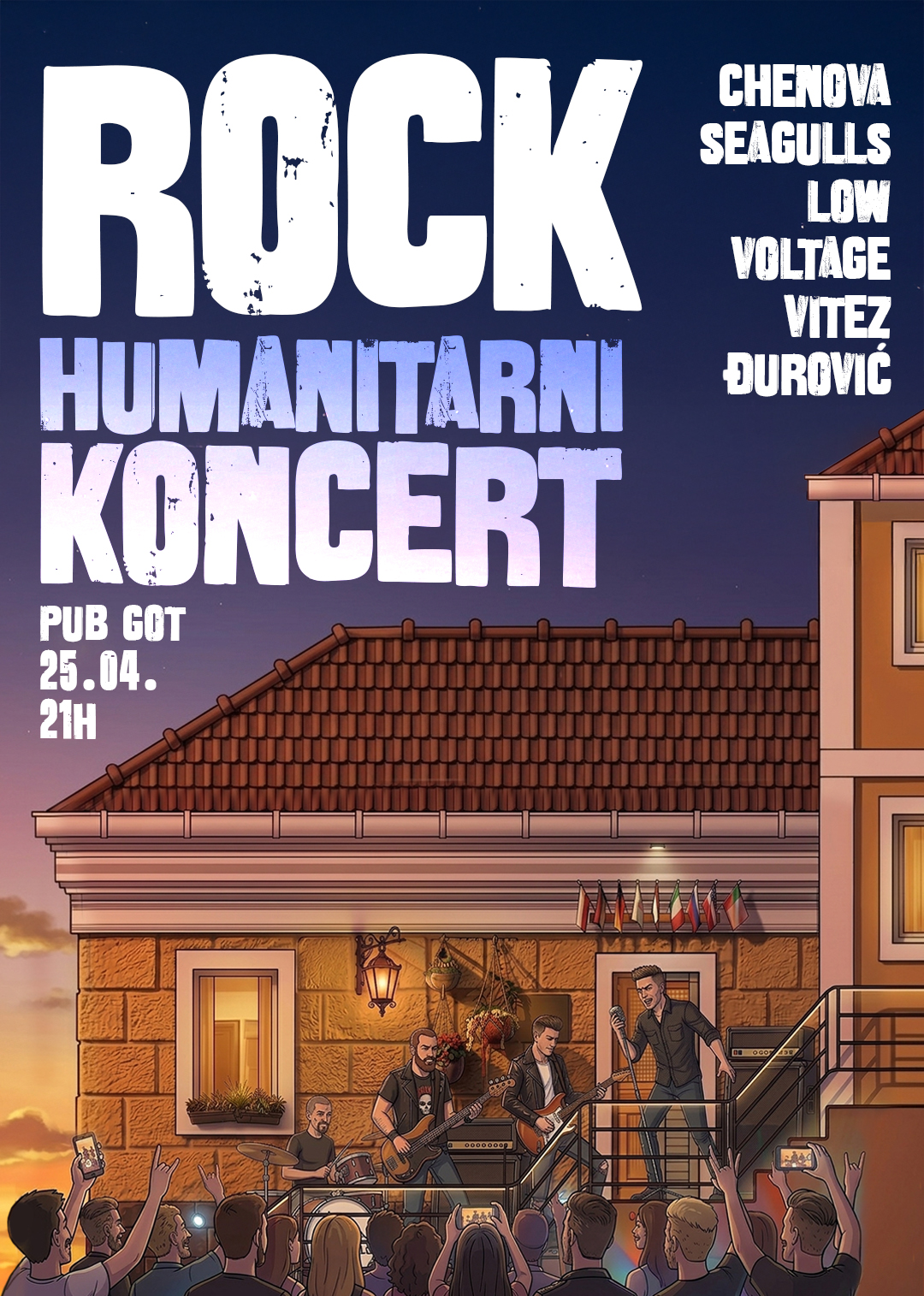 Nastupiće bendovi Chenova, Seagulls, Low Voltage i Vitez Đurović, a dobrovoljni prilozi biće prikupljani u donatorskim kutijama na samom događaju.