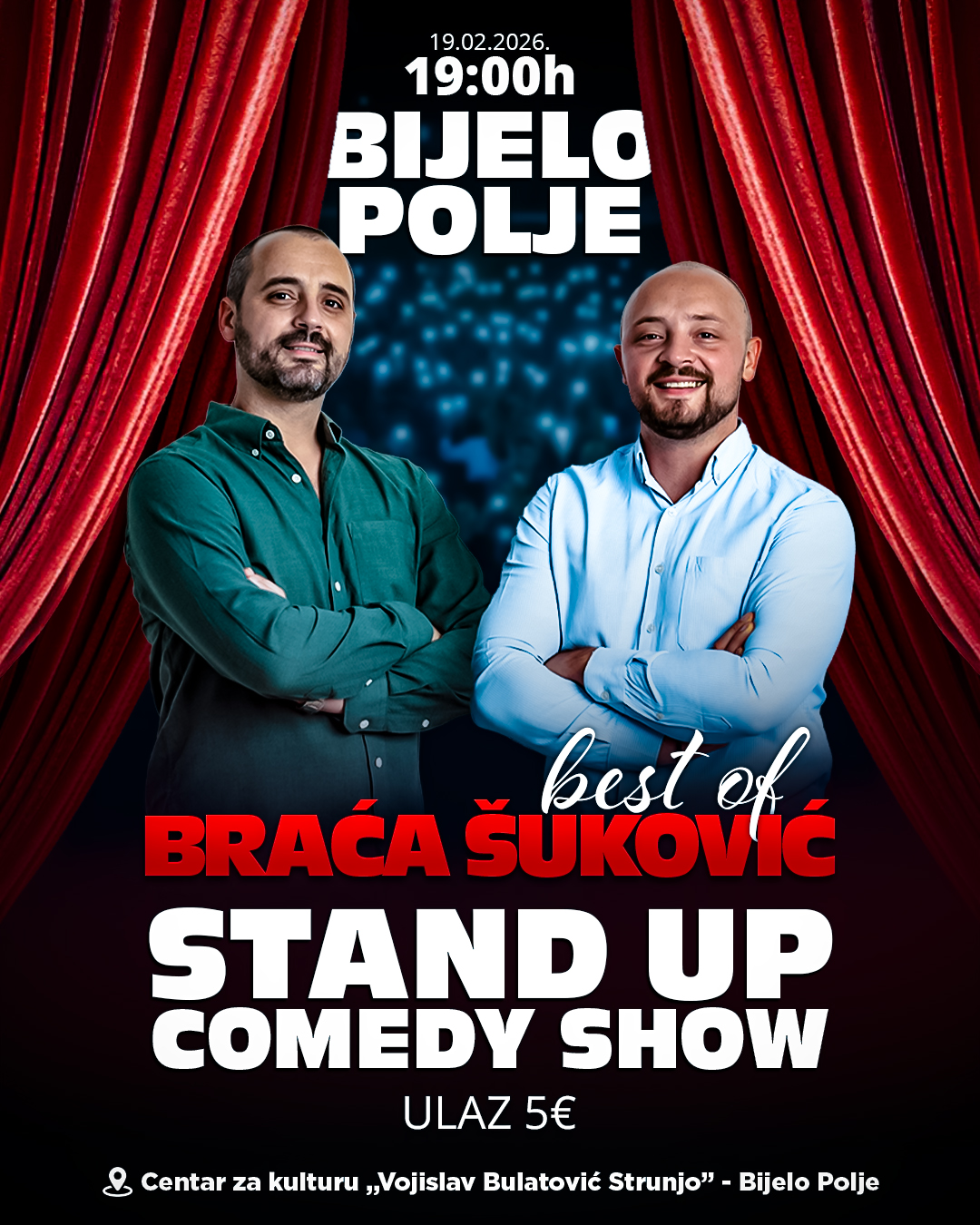 Stand-up komedija braće Šuković 19. februara u Bijelom Polju13/02/2026 20:00