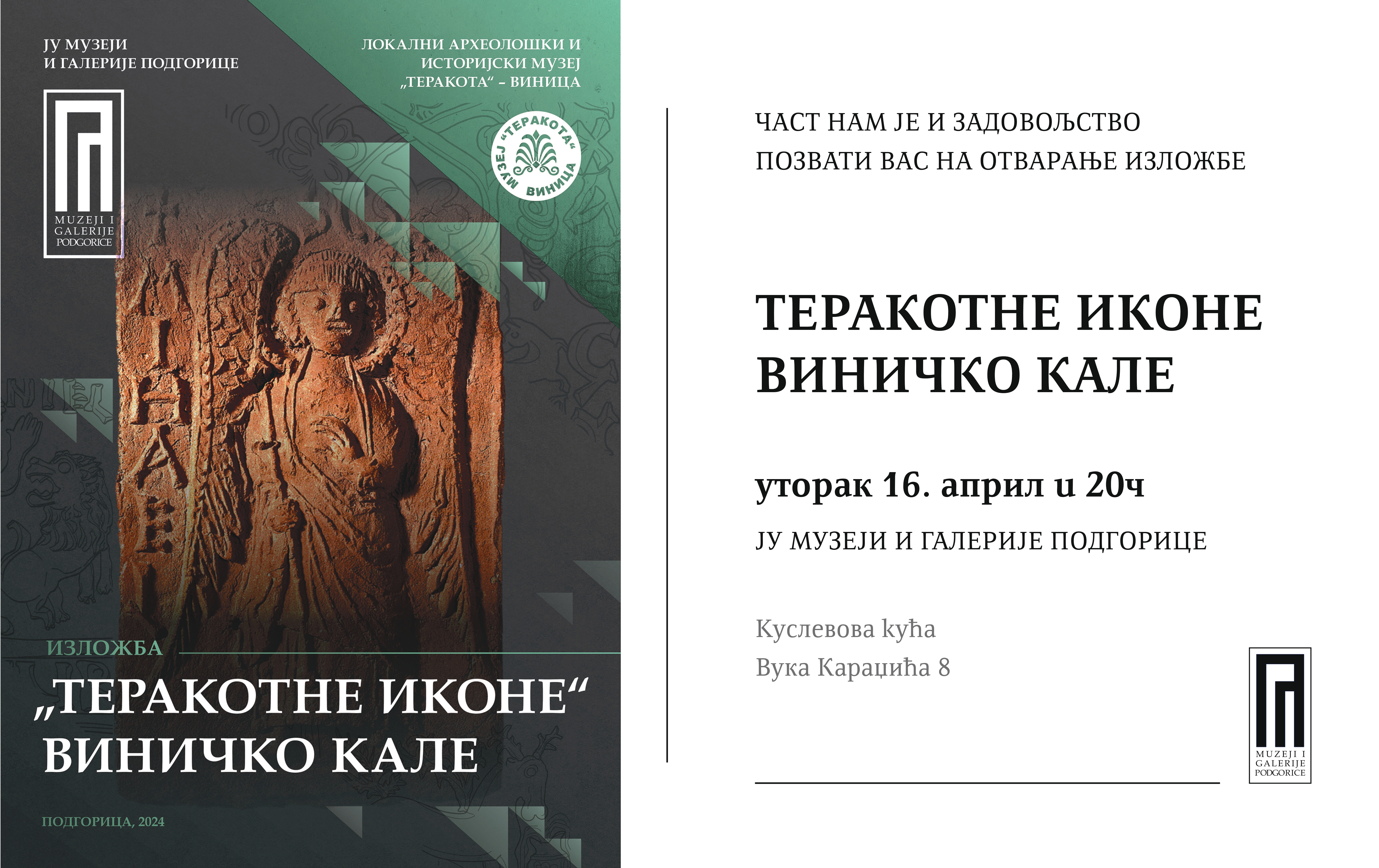 Izložba „Terakotne ikone“ - Viničko Kale, biće otvorena u utorak 16. aprila u 20 h, u Kuslevovoj kući. Autor izložbe je kustos u JU Muzeji i galerije Podgorice, Dragan Radović.