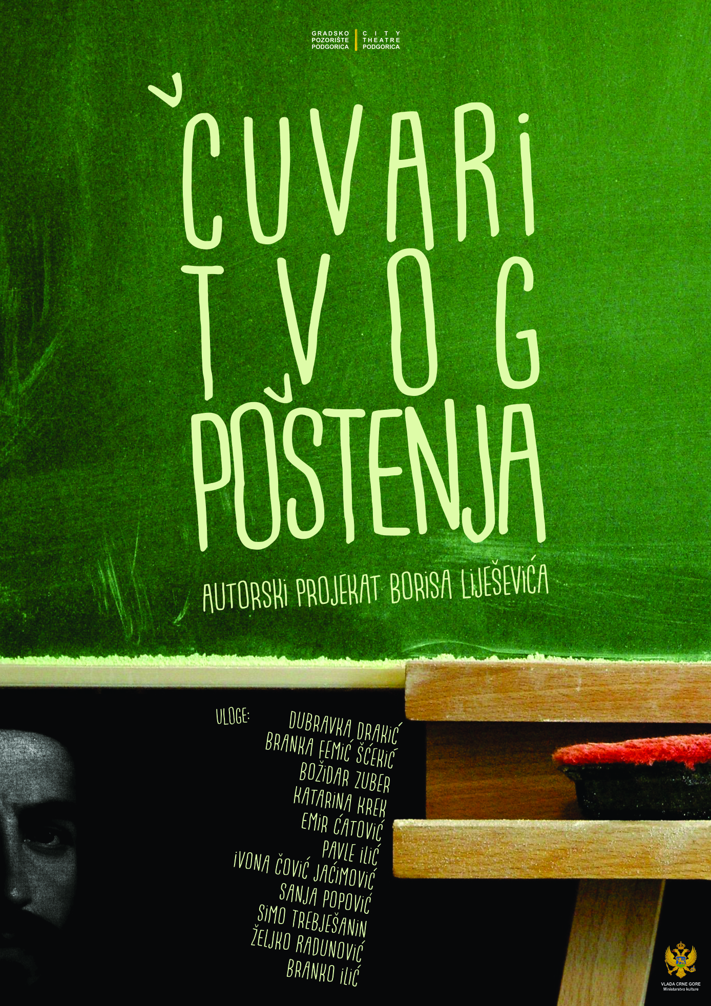 U predstavi igraju: Dubravka Drakić, Branka Femić Šćekić, Božidar Zuber, Katarina Krek/Jelena Simić, Emir Ćatović, Pavle Ilić, Ivona Čović Jaćimović, Sanja Popović, Simo Trebješanin, Željko Radunović i Branko Ilić.