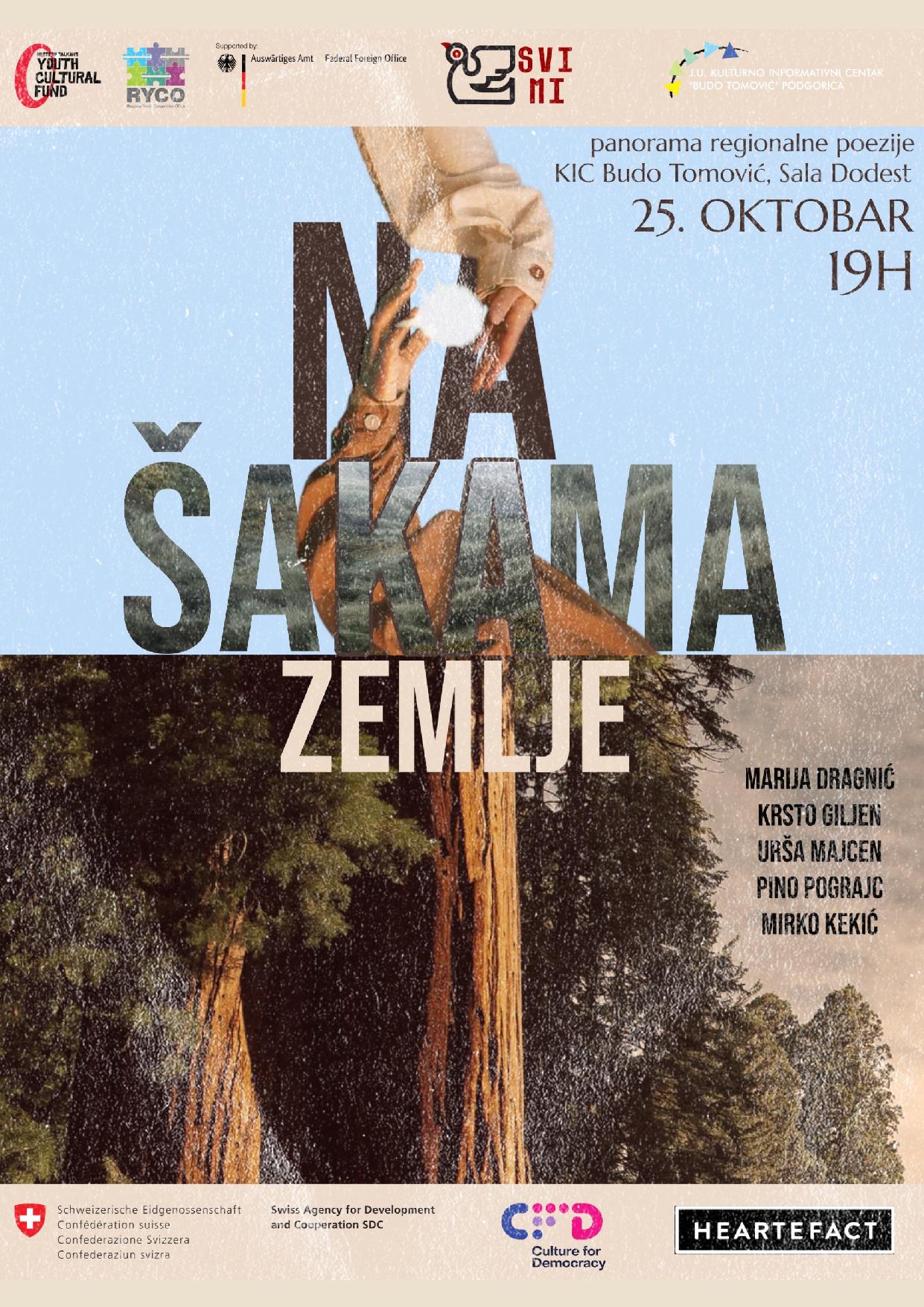 Gosti redovnog književnog programa KIC-a „Budo Tomović”, u subotu, 25. oktobra, biće programi poetskog društva SVI MI. Od 19h, u sali Dodest biće organizovano predstavljanje panorame poezije „Na šakama zemlje“ i filma video-poezije „SVI MI: Zemlja za sve“.