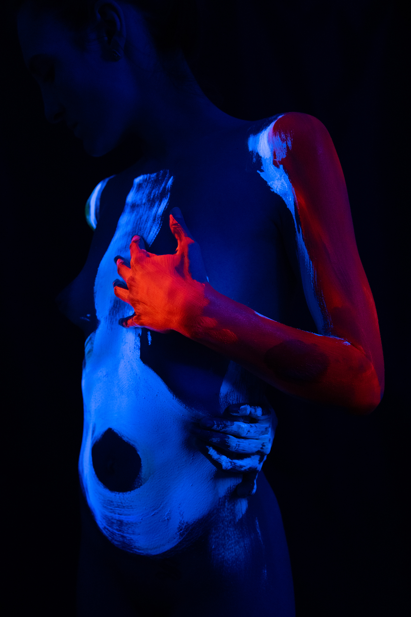 Pitanjem tela ne kao nečega što je samo fizički prisutno ili po ustaljenim shvatanjima lepo, pa samim time i zanimljivo, veoma promišljeno i postupno bave se umetnice Jovana Jarebica i Natalija Miladinović. Obe su slikarke po vokaciji i to se uočava i u ovim fotografskim radovima. Elementi likovnog, kao i sve ostalo, u njihovom slučaju nisu tu da bi se postigla određena estetika, već su tu u cilju postavljanja određenih pitanja i uspostavljanja dijaloga sa posmatračima. Pored ovog sve njihove fotografije su nastale u studiju. Aktovi na fotografijama Jovane Jarebice su oslikani fluorescentnim bojama i snimljeni su gotovo u mraku. Posmatrana iz daljine tela su teško uočljiva. Mogu se videti određeni delovi, ali ne toliko jasno i celo telo. Boje su privlačne i skoro da ne dozvoljavaju pogledu posmatrača da skrene. Tela, njihove poze i gestovi kao i sama boja su ovde znaci i poruke. Sve što je opasno i smrtonosno u prirodi, bilo da su u pitanju životinje ili biljke, je jakih, drečavih boja. Sve što je opasno i primamljivo od stvari koje koristimo u svakidašnjici počev od plastike, preko pića ili hrane koju konzumiramo sadrži manje ili više tu boju. Čestice boje, kao i plastike i druge toksične materije su u vazduhu, vodi, zemlji, svuda oko nas i u nama. S druge strane, Natalija Miladinović kroz svoje aktove istražuje dušu i unutrašnju snagu bića. Drugim rečima, ono što se na prvi pogled ne vidi. Ono što telo poput nekakve opne obavija. Fotografisanju prethode razgovori između umetnice i modela i puštanju modela da se oslobode. Dinamiku je postigla ne samo zahvaljujući igri i pokretima modela, već i produženom ekspozicijom i osvetljenjem. Pozadina kao i tela su toplih, zemljanih boja. Zbog pokreta, ali i svega navedenog, tela deluju kao da se stapaju, prepliću ili nestaju. Ono što ostaje moglo bi da se tumači kao oslobađanje unutrašnje snage ili duše. Fotografije Jovane Jarebice i Natalije Miladinović mame bojama, pokretima, tehnikom snimanja i tu se na neki način krije zamka. Bilo samostalno ili u grupi nijedna njihova akt fotografija ne prikazuje ili govori ono šta smo navikli da gledamo ili ono šta nam prija da slušamo. Njihove akt fotografije su o psihi, duši, borbi, oslobađanju energije i snage, ali i o aktuelnim društvenim ili ekološkim temama i telima kao glasovima istih.