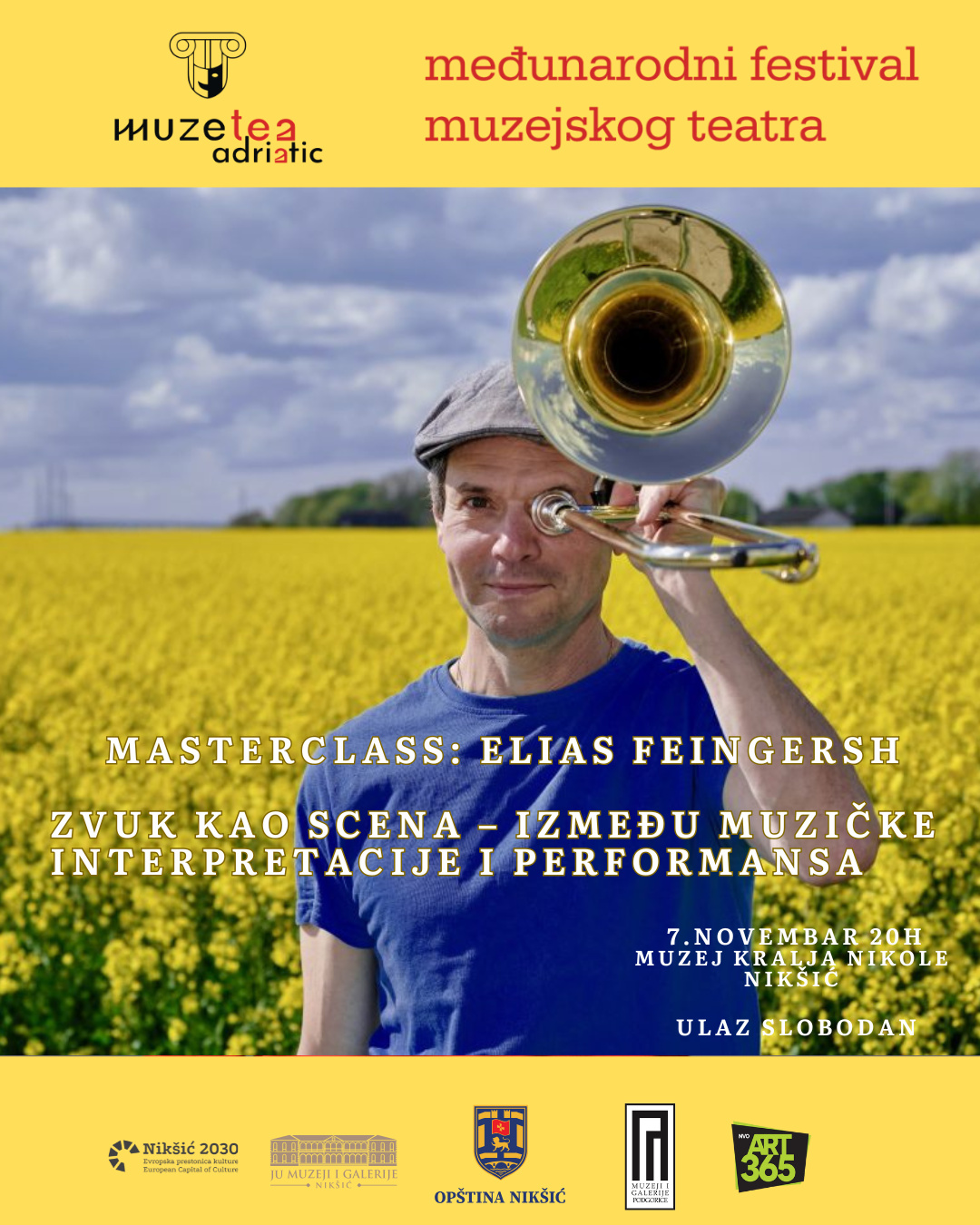 Feingersh je prepoznat kao jedan od najinventivnijih evropskih muzičara današnjice, a kritičari ga nazivaju „Zlatnim trombonom Evrope“ zbog njegovog virtuoznog tona, hrabrog umjetničkog istraživanja i izuzetnog dara za komunikaciju sa publikom. Nakon predstave u Nikšiću, Feingersh će održati masterclass pod nazivom „Zvuk kao scena – između muzičke interpretacije i performansa“, posvećen istraživanju odnosa tijela, prostora, improvizacije i live electronics u savremenom muzičkom izvođenju, namijenjen studentima, profesionalnim muzičarima, pedagozima i svima zainteresovanima za savremene pristupe muzičkom performansu.