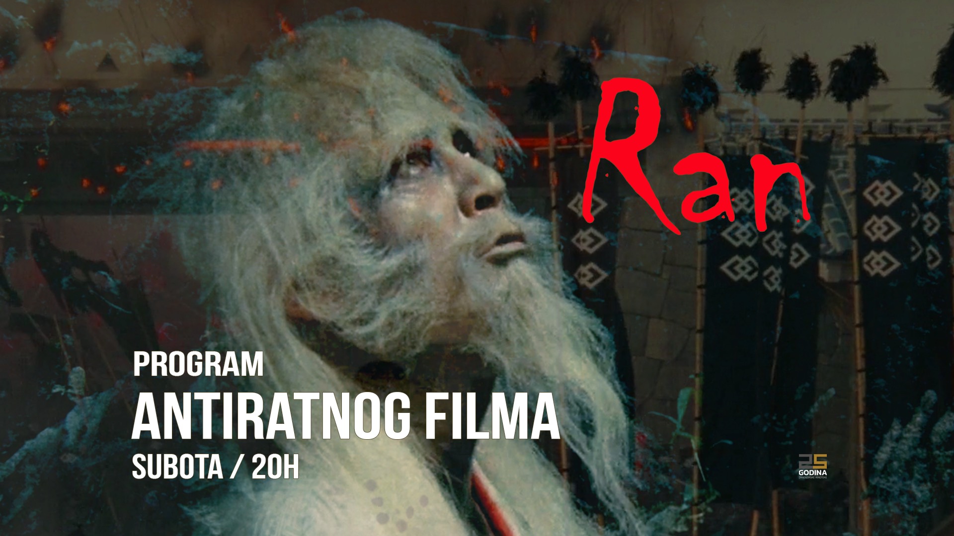 Program Antiratnog filma u Crnogorskoj kinoteci se nastavlja u subotu, 8. novembra u 20 h u sali „Gojko Kastratović", projekcijom epskog ostvarenja „Ran" (Ran, 1985) legendarnog japanskog reditelja Akire Kurosave.