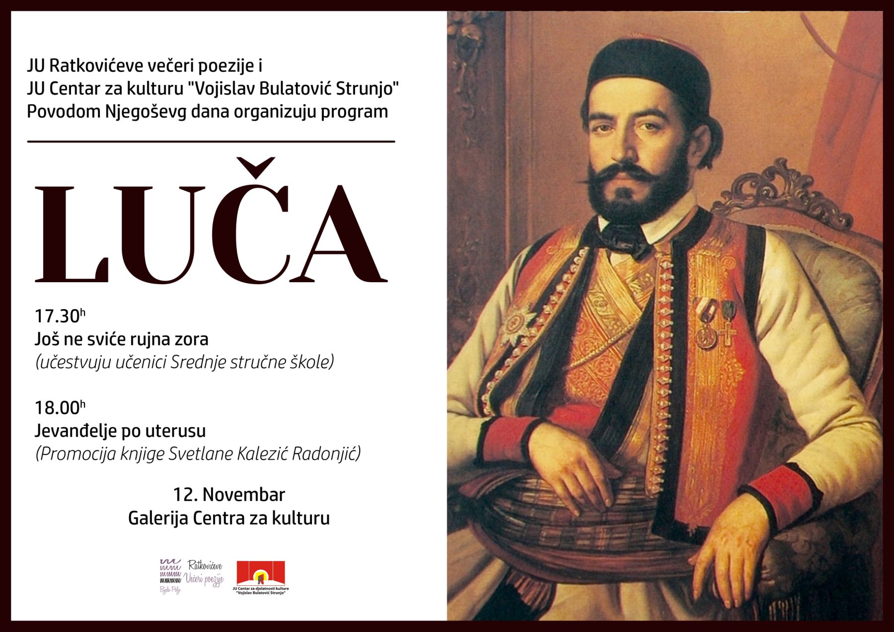 JU „Ratkovićeve večeri poezije” i JU Centar za kulturu „Vojislav Bulatović Strunjo”, u okviru obilježavanja Njegoševog dana, organizuju program „Luča”.