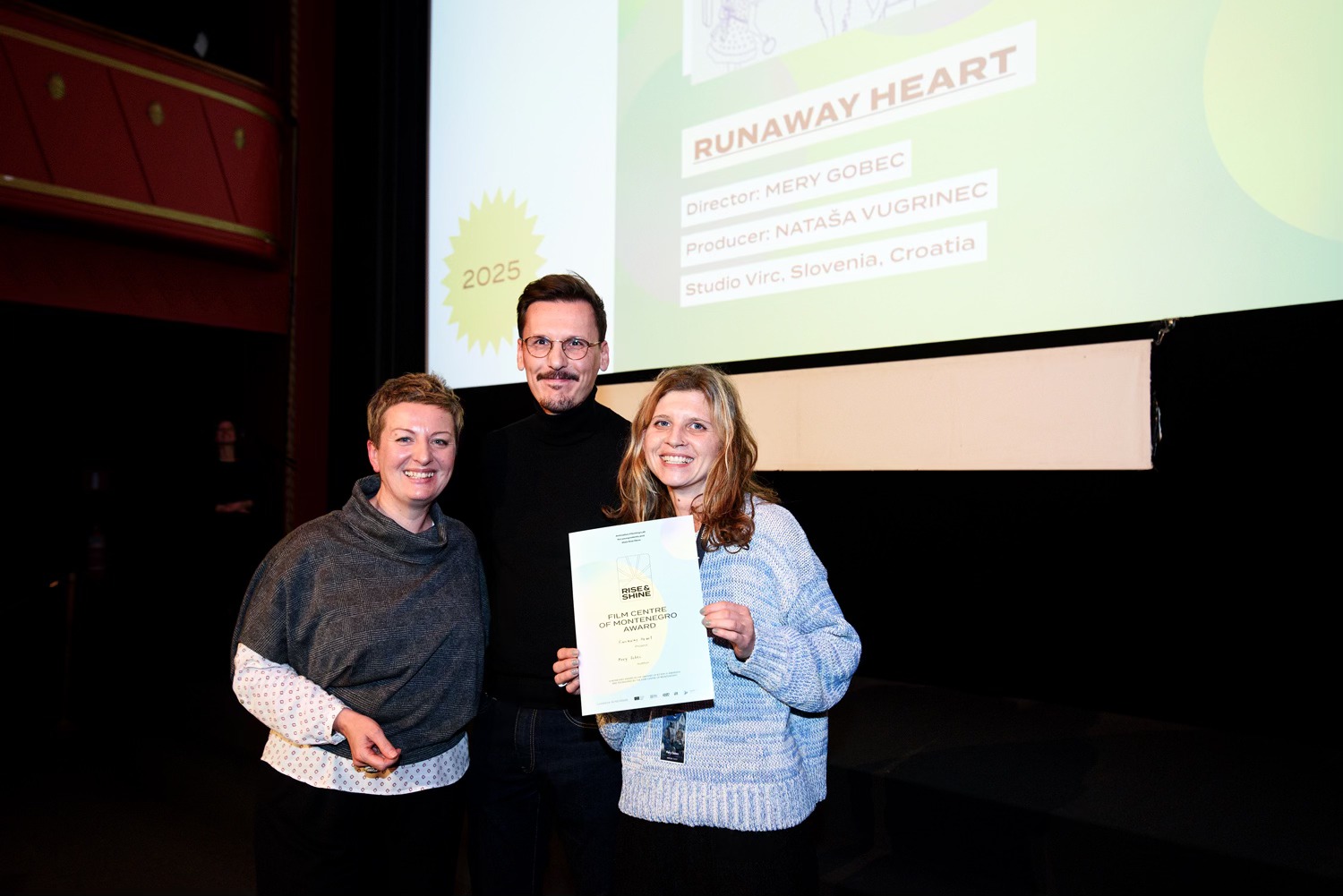 Filmski centar Crne Gore je i ove godine, kao zvanični partner programa, dodijelio novčanu nagradu u iznosu od 1.500 eura za najbolji projekat u razvoju. Na osnovu selekcije rukovodioca Odjeljenja za međunarodnu saradnju, promociju i plasman Marka Erakovića, nagrada Filmskog centra Crne Gore je pripala projektu „Runaway Heart“ (Pobjeglo srce), rediteljke Mery Gobec i producentkinje Nataše Vugrinec iz Studija „Virc“.