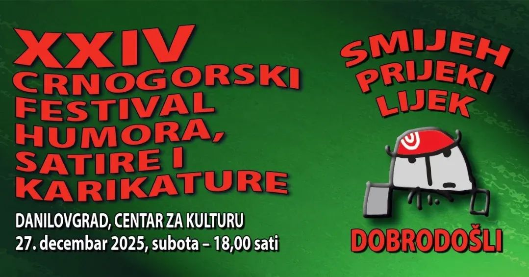 KIC „Bijeli Pavle“ u saradnji sa JU Centar za kulturu Danilovgrad organizovaće večeras (subota, 27. decembra) u 18h XXIV Crnogorski festival humora, satire i karikature. Festival će se održati u Centru za kulturu Danilovgrad.