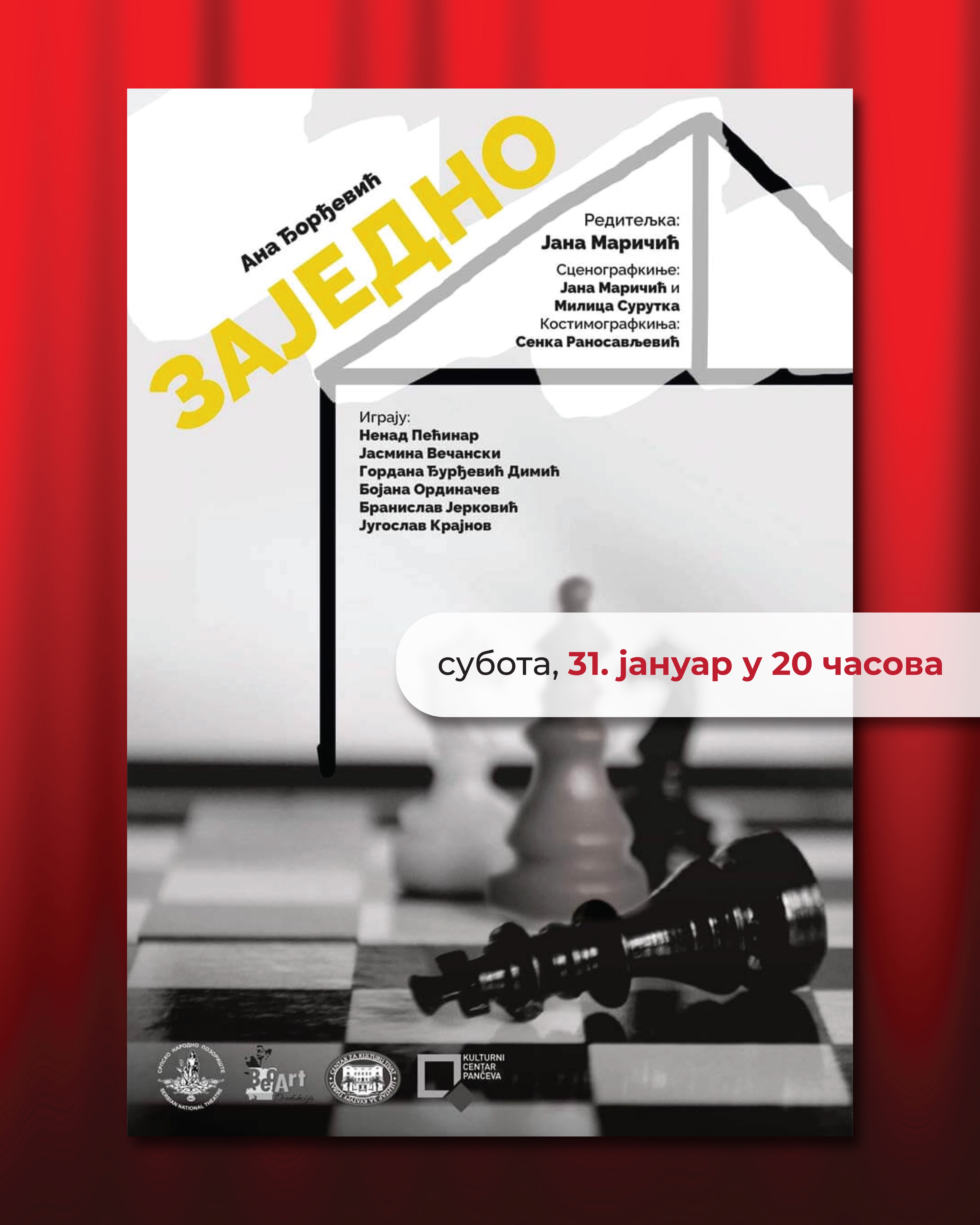 U subotu, 31. januara u 20 h, u Nikšićkom pozorištu biće izvedena predstava „Zajedno“, rađena po tekstu Ane Đorđević, u režiji Jane Maričić, kao prva predstava u sklopu Beo Art revije, koja će trajati od 31. januara do 3. februara.