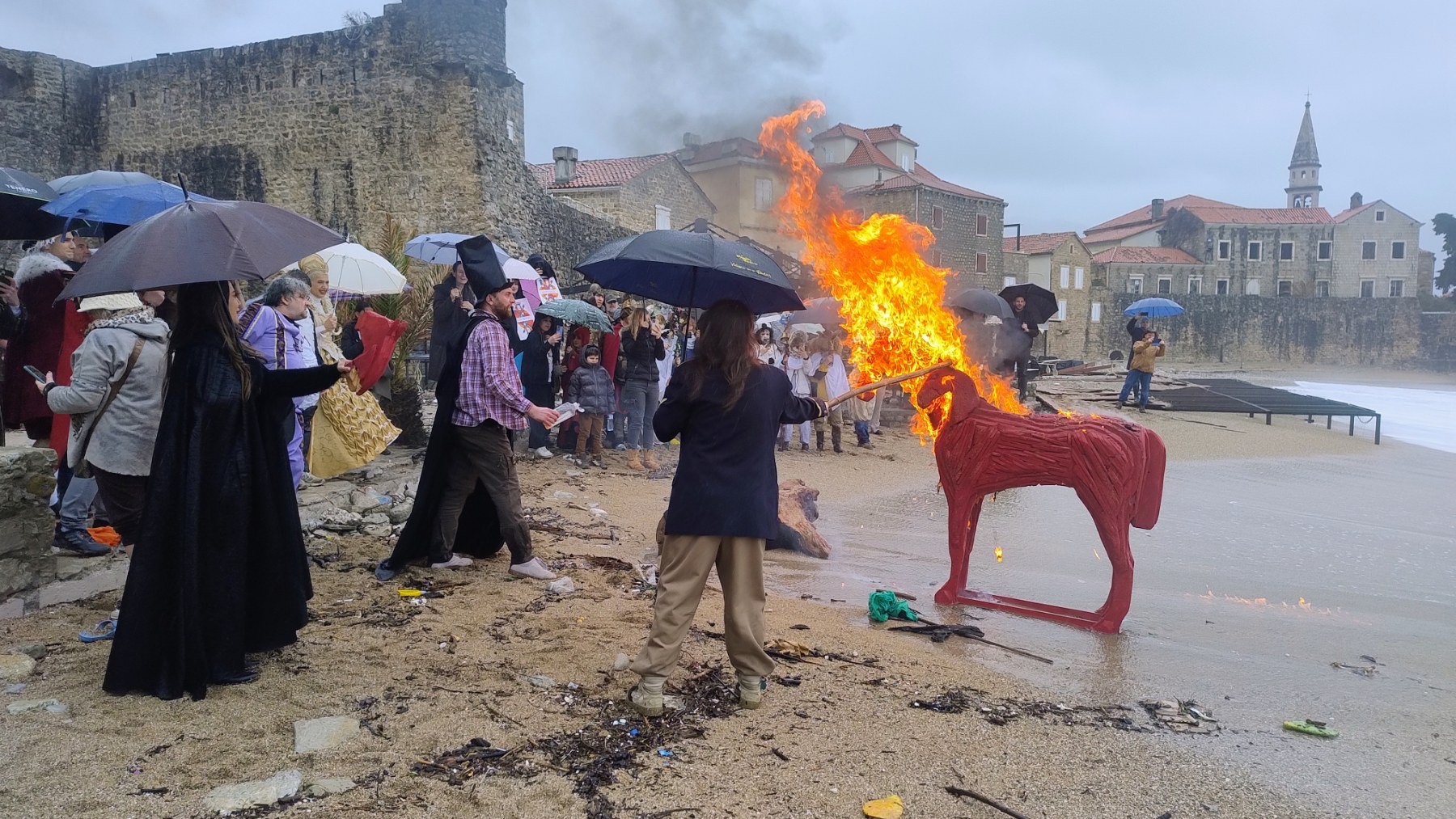 Nakon suđenja, karnevalska povorka je spalila karneval na Brijegu od Budve, čime je simbolično zaključen ritualni dio manifestacije. Zbog nepovoljnih vremenskih uslova, završna fešta nastavljena je u ugostiteljskom objektu Mogren, uz tradicionalnu pašticadu i muziku klape Stari kapetan.