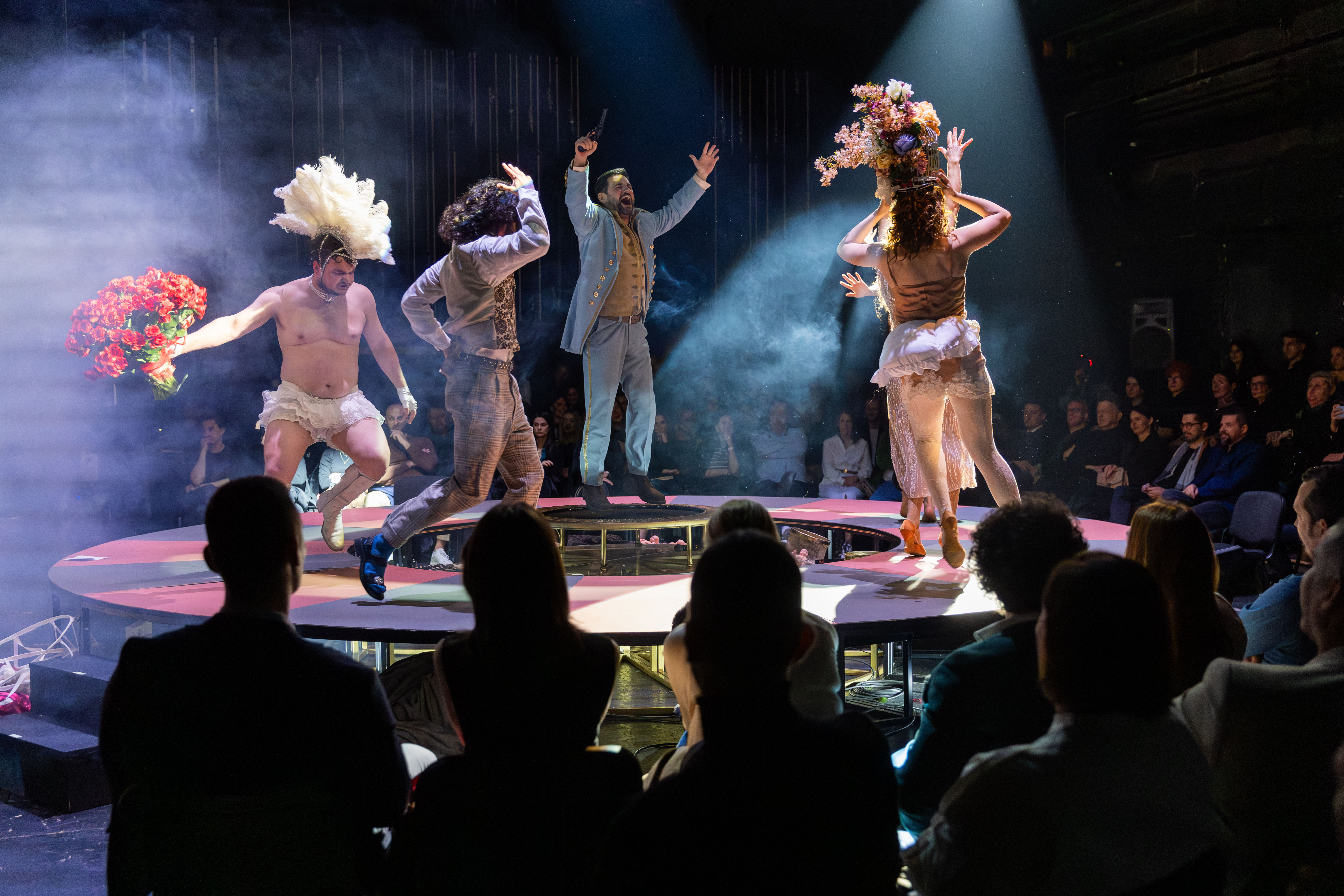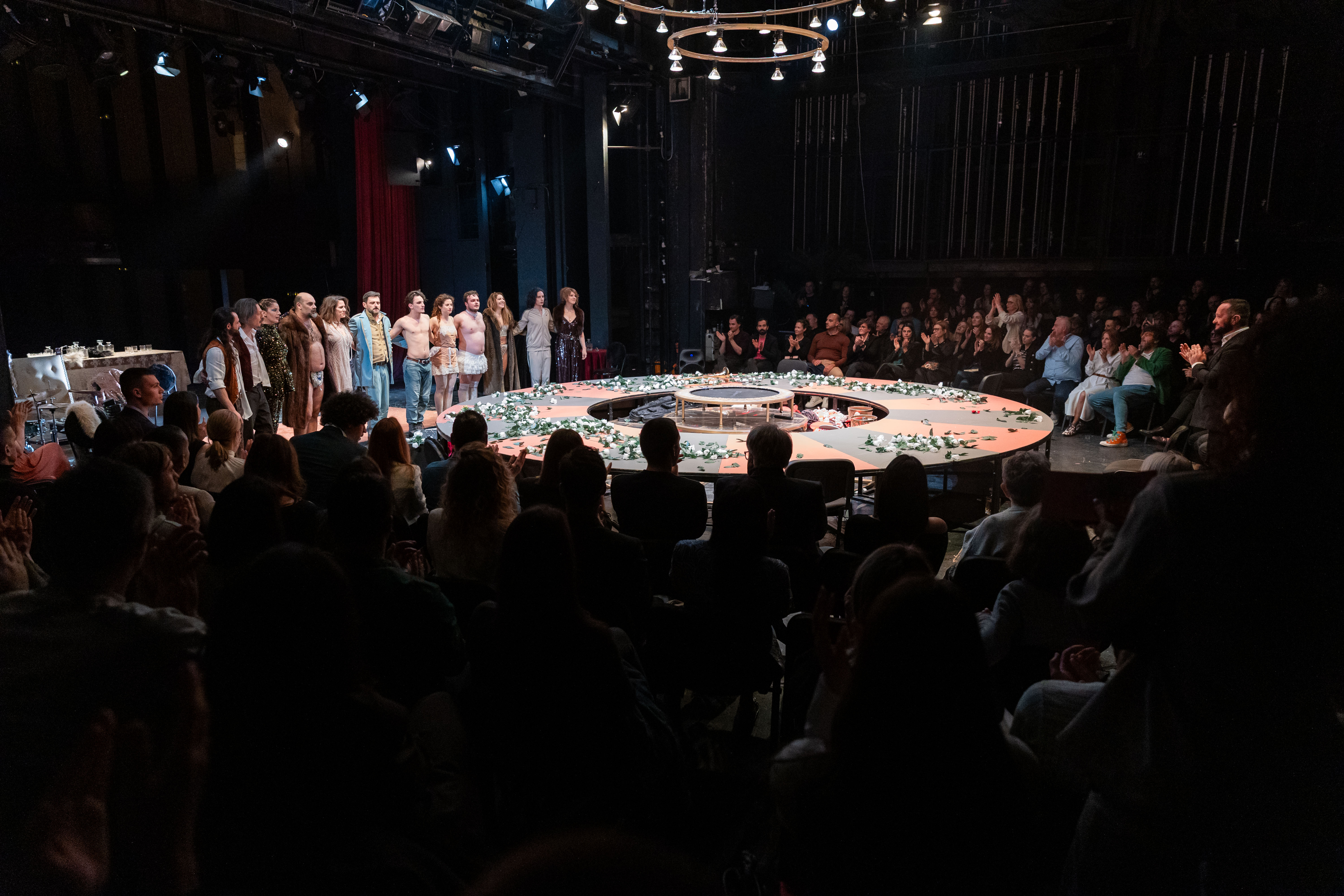Posebnom doživljaju doprinosi to što se publika tokom predstave nalazi na sceni i okružuje glumce i platformu u obliku ruleta, te tako bliže proživljava radnju i emocije.