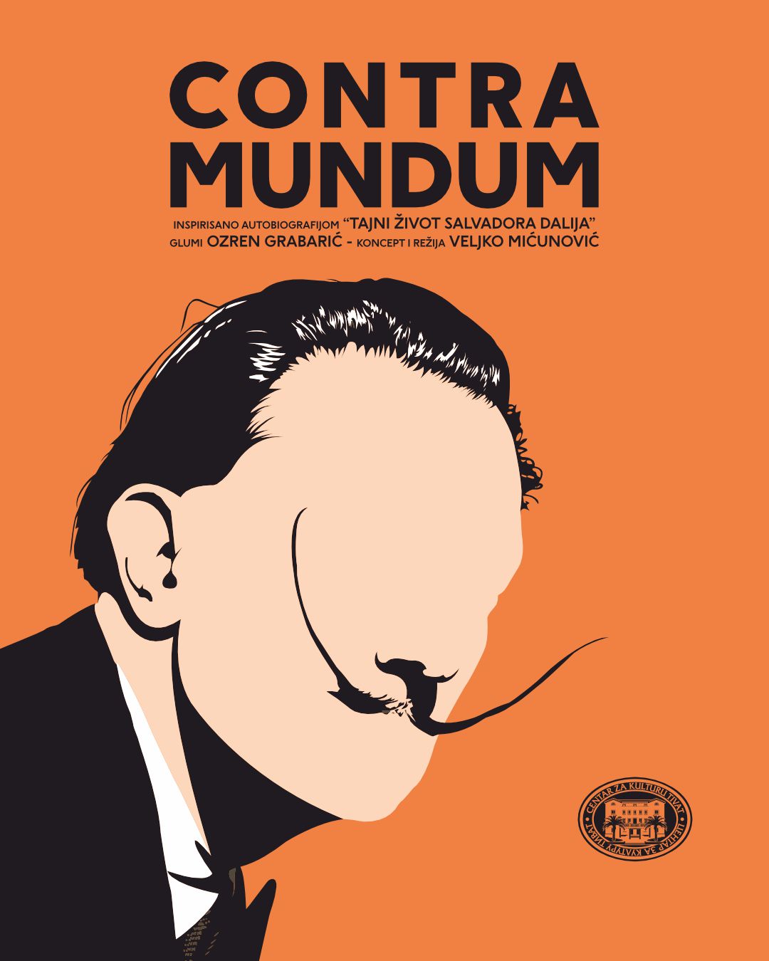 „Njegova ekscentrična pojava i šokantni stavovi u javnosti izazivali su podijeljena mišljenja, ali su ga i proslavili… Salvador Dali. Genije ili šarlatan? Proročka slika savremenog svijeta ili puka diverzija svakog pravila, poretka, ideologije…? „Contra Mundum” nije predstava po biografiji velikog umjetnika, već igra sa zagonetkom o umjetnosti života na ovom svijetu. To je vulkan ideja koji se pretače u pozorište jako dobro, jako potentno, scenski, dramski, slikovito, metaforično. I baš zato on - Dali, baš zato što danas živimo u svijetu bez originalnosti, bez individua, u svijetu gdje caruju mediokriteti, u svijetu neke reciklaže, u svijetu gdje smo prisiljeni da živimo kulturu neutralnosti i gdje smo zapravo prinuđeni da se prilagođavamo, da neprestano ulazimo u neki tor sa ambijentom u kojem sami sebi diskretno govorimo: Ćuti, može i gore. U ovoj predstavi pokušavamo da prepoznamo u sebi sve ono što smo izgubili”, riječi su reditelja.