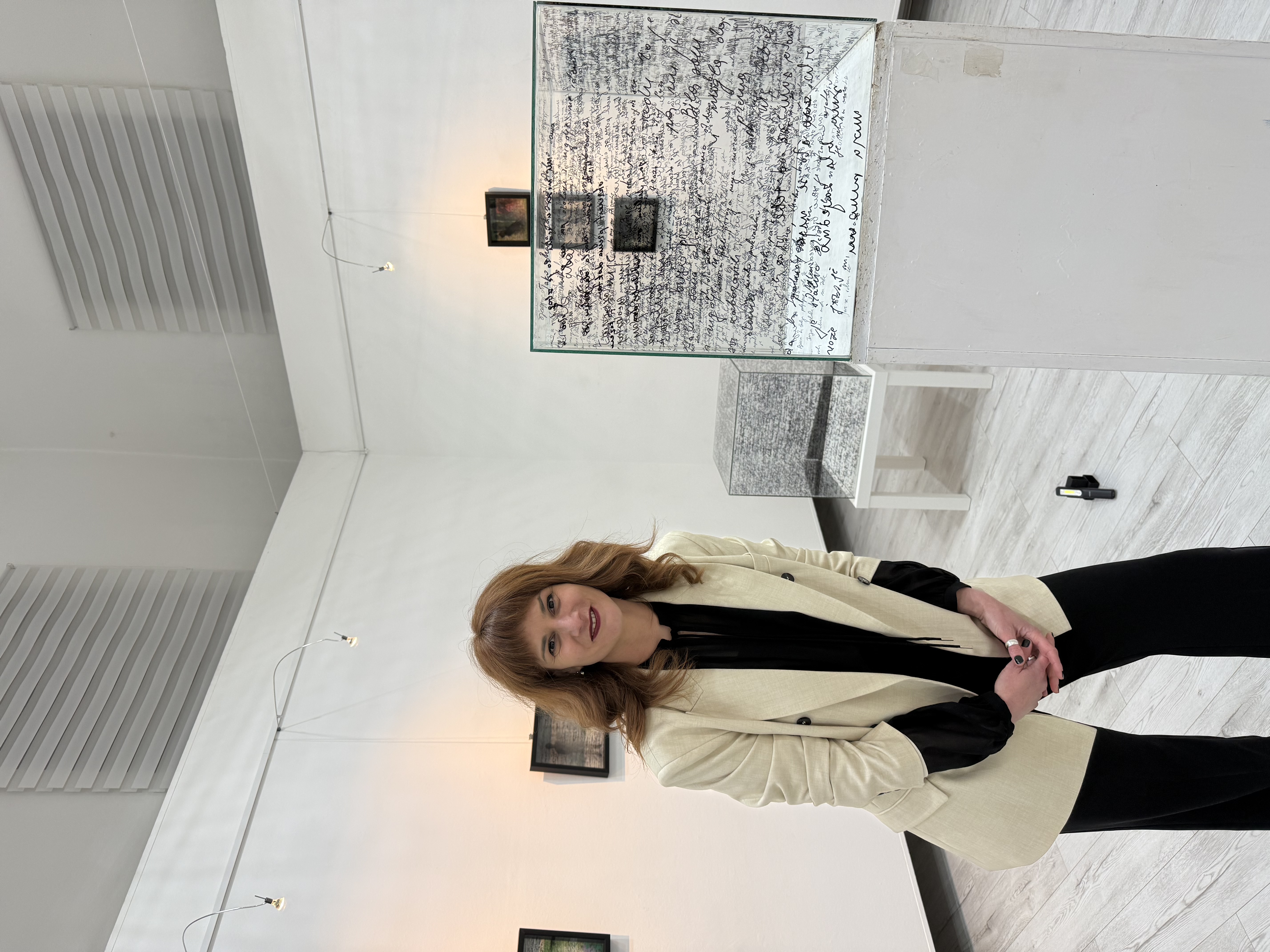 Izložba objedinjuje radove na papiru u kombinaciji sa staklenim površinama, kao i prostorne elemente u formi staklenih kubusa. Kroz igru rukopisa, svjetlosti i sjenki, Jovana istražuje granice između prisustva i odsustva. Diskretan zvuk pisanja po papiru prati posmatrača kroz prostor, produbljujući osjećaj intime i kontemplacije. Svaki detalj poziva posmatrača da zastane, osjeti i sagleda tragove vremena i sjećanja.