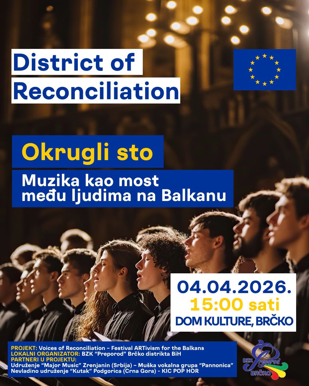 “Ovaj događaj finansira EU, a dio je projekta „Voices of Reconciliation – Festival ARTivism for the Balkans“, koji ima za cilj jačanje regionalne saradnje i podsticanje umjetničkog izraza kao sredstva pomirenja i razumijevanja među zajednicama”, naglašava osnivačica i menadžerka KIC pop hora Snežana Burzan Vuksanović, dodajući da “međunarodni festival „Glasovi pomirenja“ u Brčkom predstavlja jedinstvenu priliku regionalne saradnje horova i mjesto da publika doživi umjetnost koja nadilazi podjele i šalje snažnu poruku – da su glasovi zajedništva uvijek glasniji od razlika.