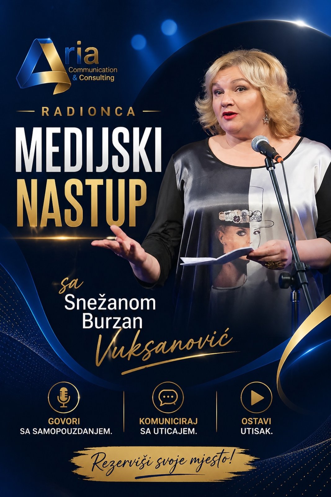 Kompanija ARIA Communication & Consulting organizuje specijalizovanu radionicu “Medijski nastup”, koju će voditi istaknuta ekspertkinja za komunikacije, medije i odnose s javnošću, mr Snežana Burzan Vuksanović.