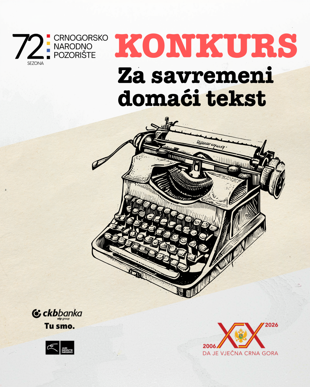 JU Crnogotsko narodno pozorište objavljuje konkurs za savremeni domaći dramski tekst u 2026. godini.